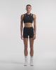 • High-neck, racerback silhouette with back cut-out detail