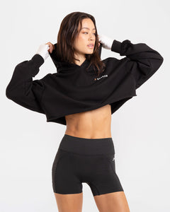 Crafted from a durable stretch cotton blend, this cropped hoodie is finished with our signature WE DON'T PLAY BOXING® slogan across the back.